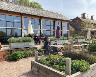 Brambles Bed and Breakfast has a large south-facing garden with views towards Tiverton and the Exe Valley, the Blackdown Hills and Culm Valley. Heavily planted borders, with hundreds of hardy perennials, azaleas, camellia, ferns, flowering quince, forsythia, fuchsias, lilac, magnolias, pieris, rhododendrons, roses, skimmia and viburnum. Terraced with seating areas, lawns, paths, patios, hedges, green houses, sheds, plant tables and pots, the garden provides a welcoming and tranquil environment for guests to appreciate. There are often plants for sale and free to take away.
